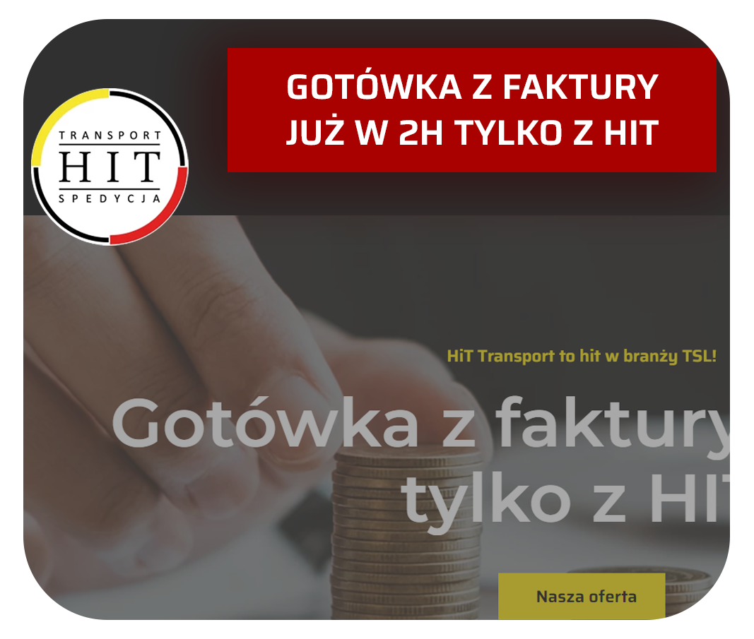 Dzięki usłudze finansowania faktury dla przewoźników HiT Transport otrzymasz środki za swoją fakturę nawet w dniu jej wystawienia. Wypełnij wniosek online w kilka minut - bez papierowych wniosków i umów.